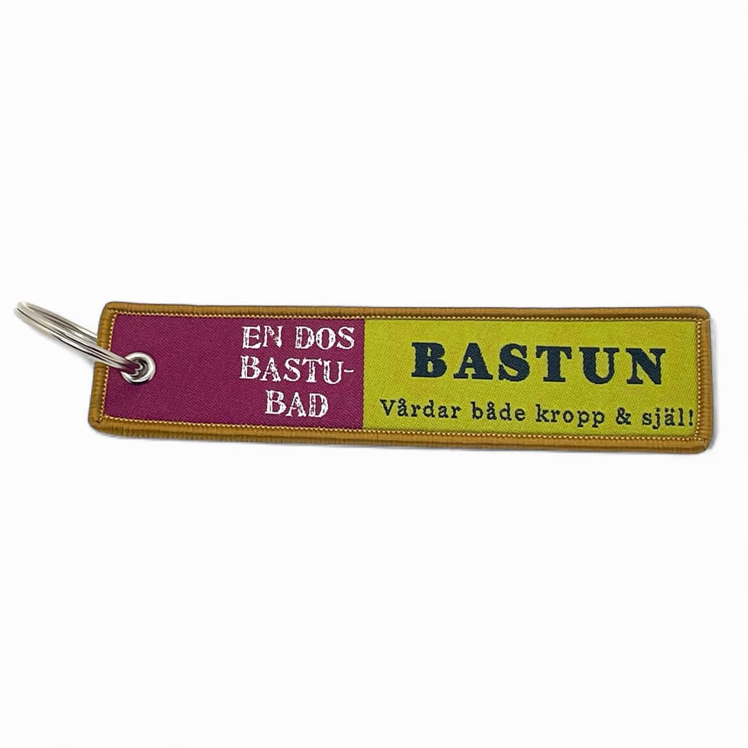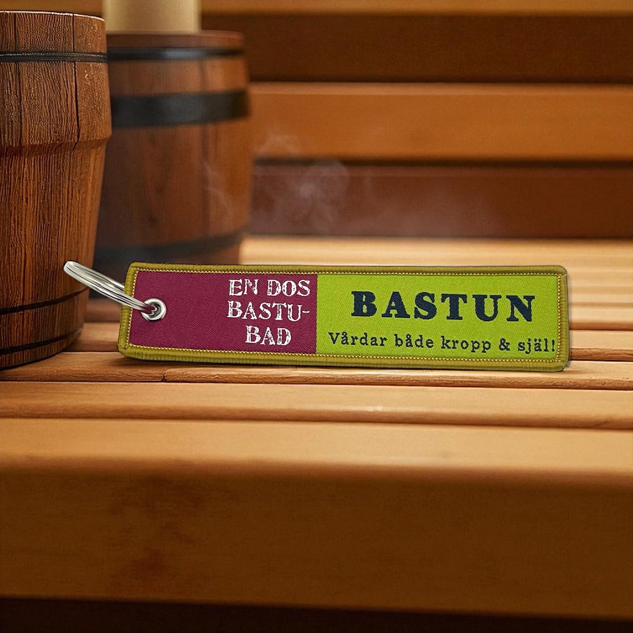 Letar du efter en present till bastuälskaren? Den här charmiga nyckelringen med broderad text “En dos bastubad – Bastun vårdar både kropp & själ” är en perfekt liten gåva som sprider både värme och välmående.