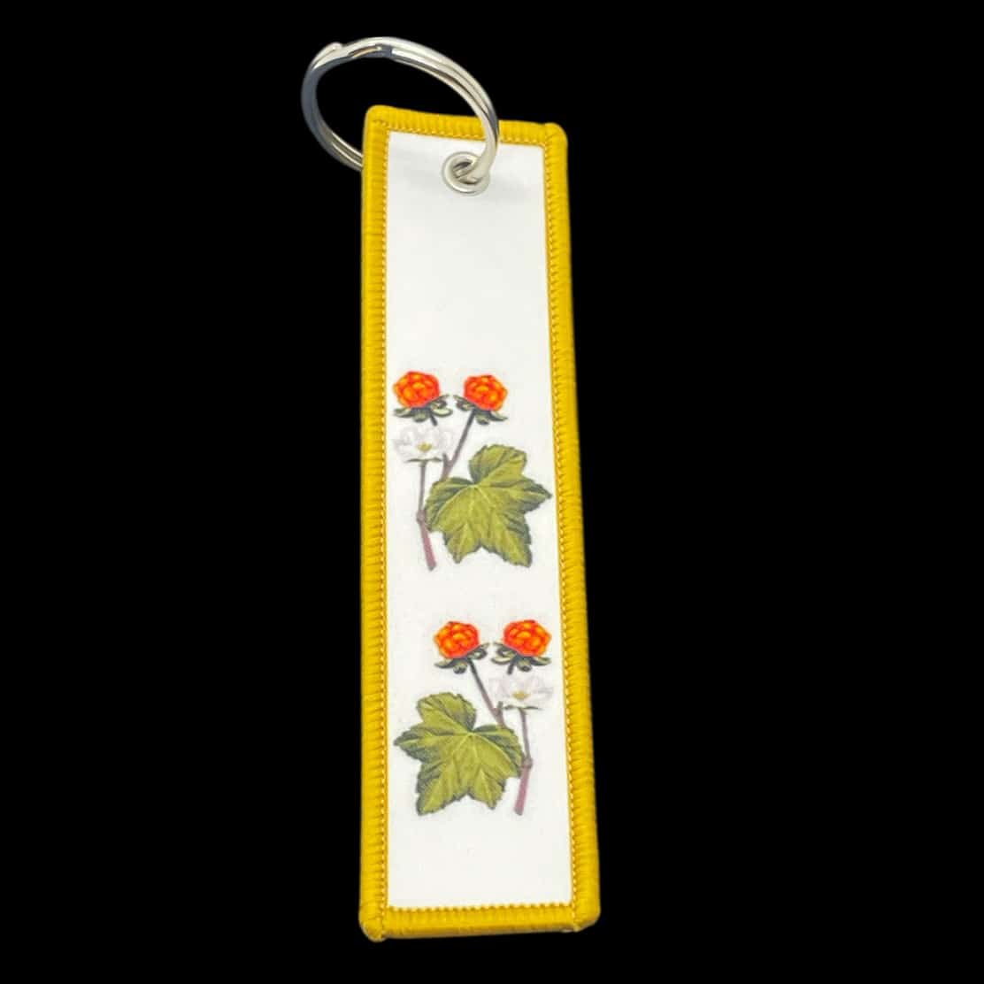 Med dubbelsidig brodyr och slitstarkt material är nyckelringen både dekorativ och praktisk. Perfekt för dig som älskar friluftsliv, svenska bär eller bara vill ha en unik accessoar med tydlig koppling till vår nordiska natur. Häng den på nyckelknippan, ryggsäcken eller jackan och ta med dig hjortronlyckan överallt.